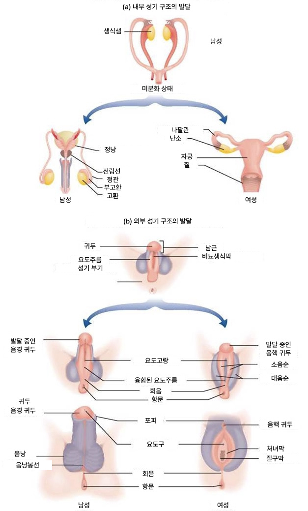 - 표현형(Phenotype): 관찰 가능한 1차 및 2차 성징 (생식기, 지방 및 근육 분포, 골격 구조 등)