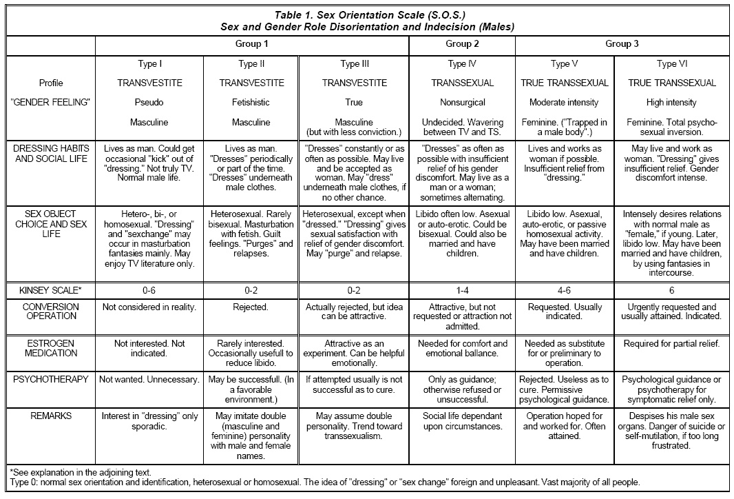 문제는 5등급과 6등급이 독점적으로 출생 성별에 끌림을 느껴야 한다고 요구했다는 점입니다. 트랜지션은 반드시 이성애자가 되는 것이어야 했고, 게이와 양성애자는 허용되지 않았습니다. 몸과 생식기에 극심한 불쾌감을 경험해야 했고, 치료 없이도 이미 진정한 젠더로 살고 있어야 하기도 했습니다. 많은 트랜스젠더인이 공동체 코칭과 퍼포먼스적인 표현을 통해 이러한 제한을 우회하기도 했지만, 많은 (저를 포함한) 사람들에게 있어서 이 척도에 맞아떨어지지 않는다면 트랜지션할 만큼 진정한 트랜스젠더인이 아니라고 믿어졌었습니다.